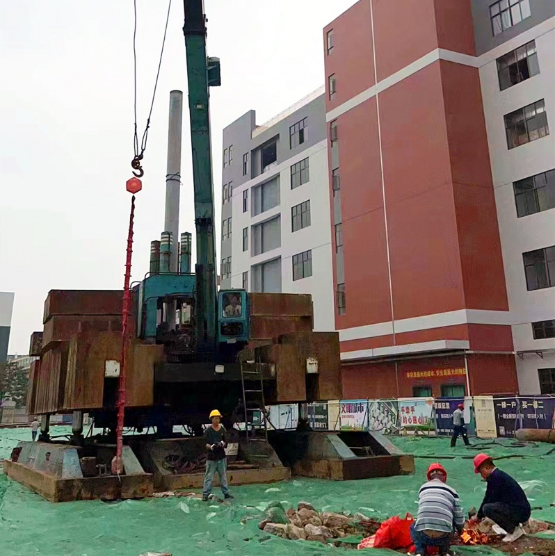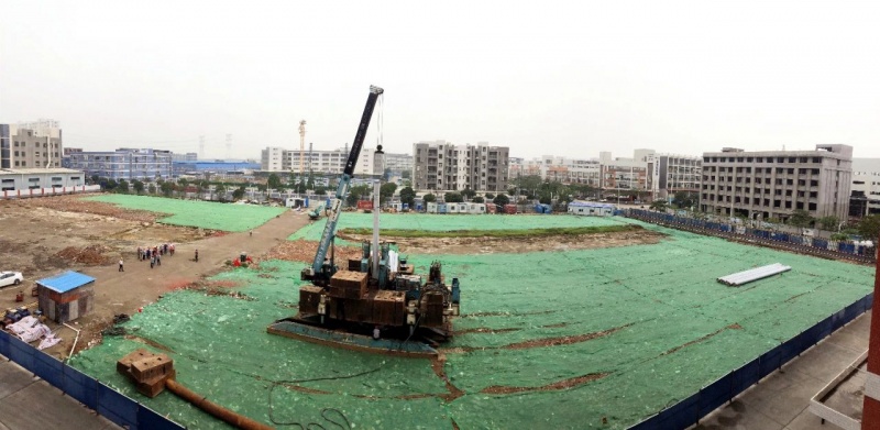 ▲项目建设现场全景 打桩机就位