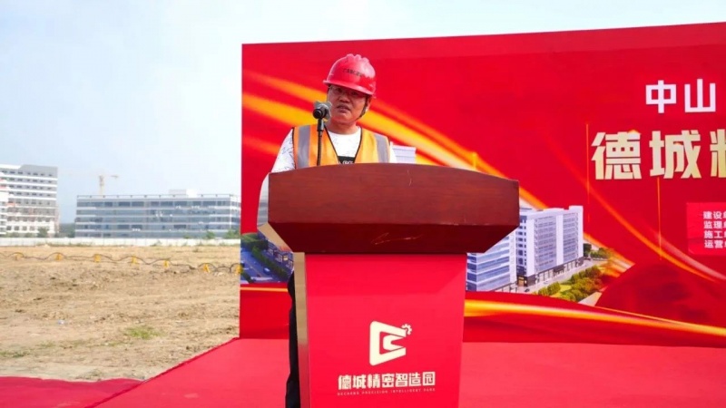 建设单位【中山市新德城实业】代表首先致辞,向中山市委、坦洲镇政府致以衷心感谢,并介绍了项目基本情况,表示新德城实业将全力以赴建造湾区精密智造产业园区标杆,推动更多优质企业落户,全力助推中山“新十大舰队”做优做强!